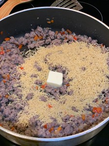 Heat to a boil – reduce heat and simmer until pasta is cooked (about 10-12 minutes.) You’ll want to keep an eye on it and stir occasionally. You may need to add more chicken stock or water.
