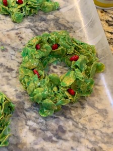 Shape into wreaths and decorate (Tip: You’ll want to decorate right away before the candies aren’t able to stick as easy)