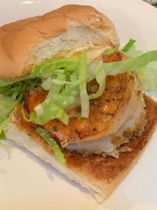 Mark and I had ours on toasted slider rolls with a mayo/siracha sauce. So good! The kids started with their shrimp on a roll and ended up eating them separately.
