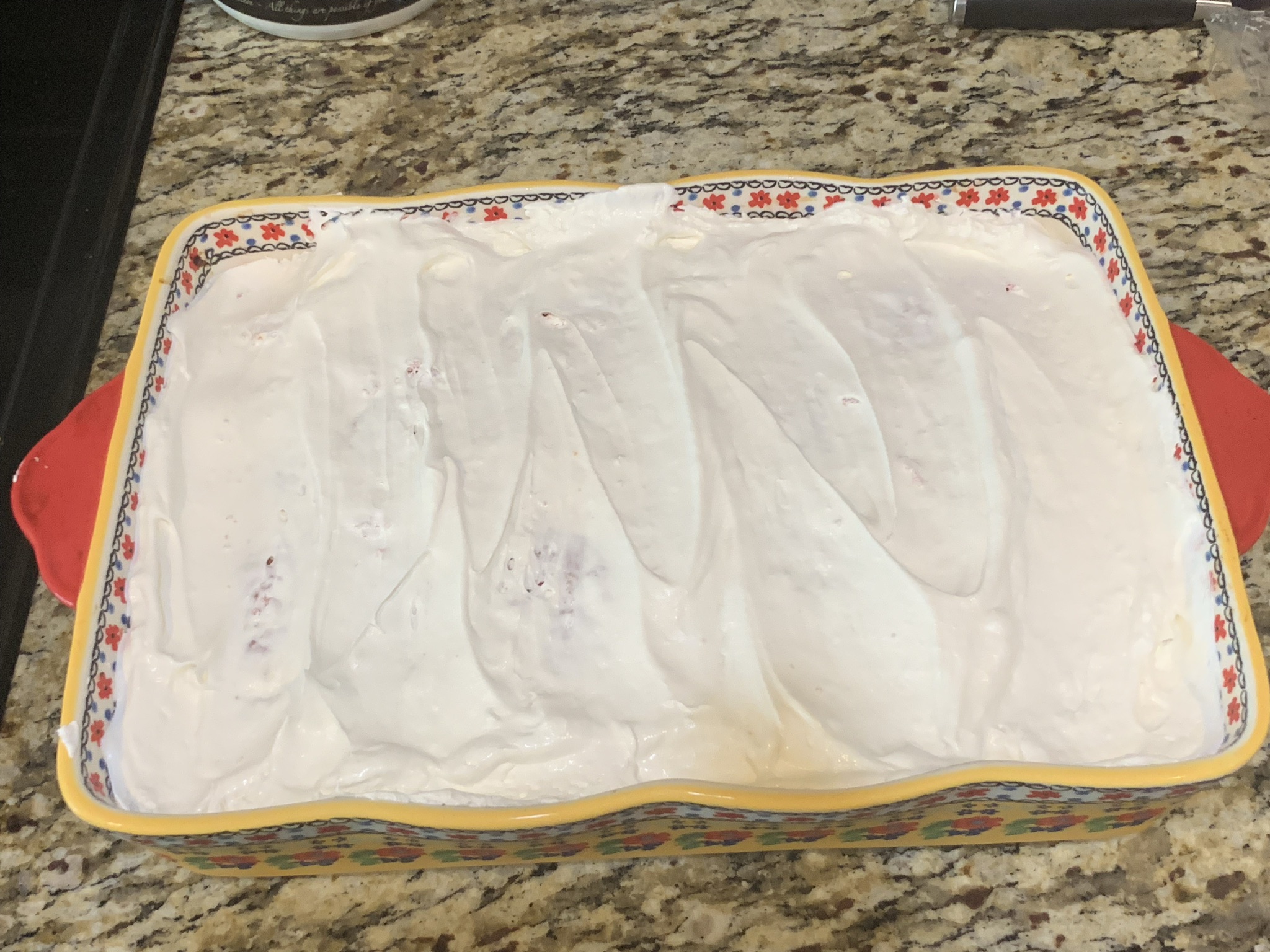 Cover with a layer of cool whip and keep in the refrigerator until serving.