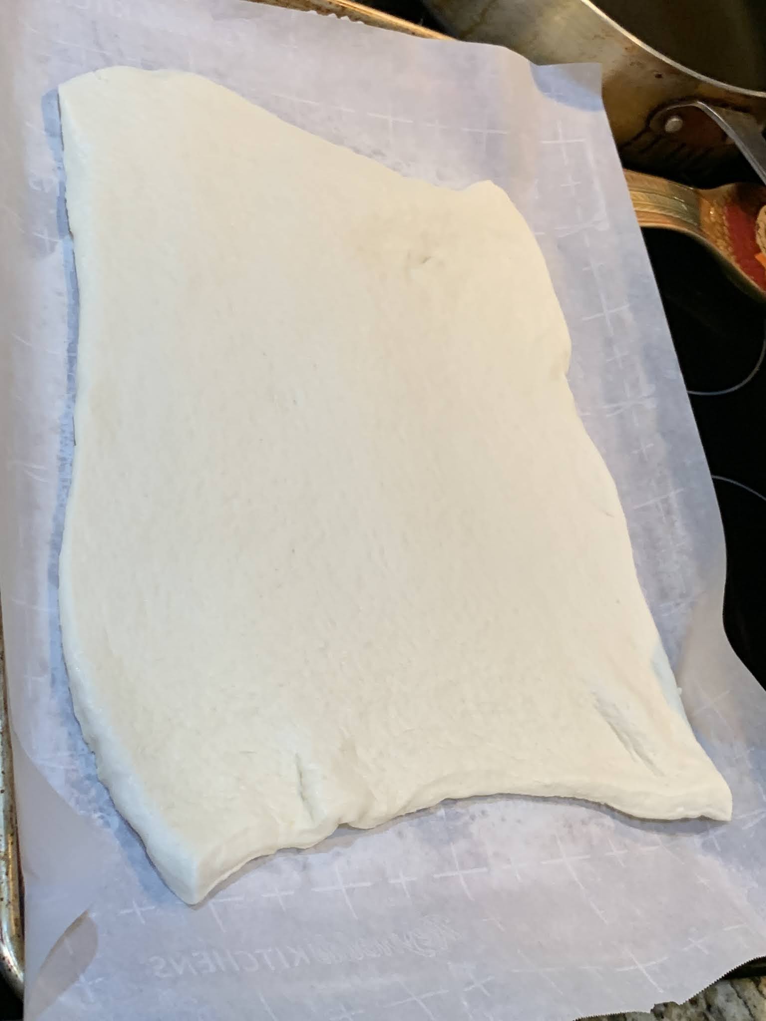 Spread out the dough on parchment paper in a shape somewhat like a rectangle