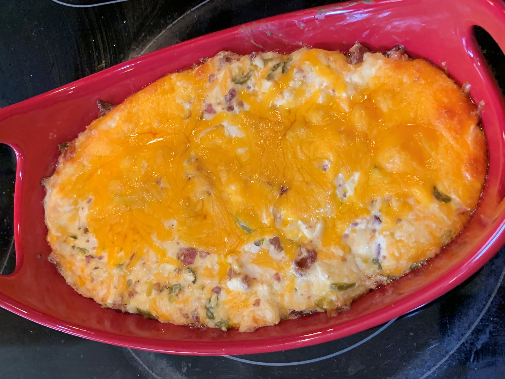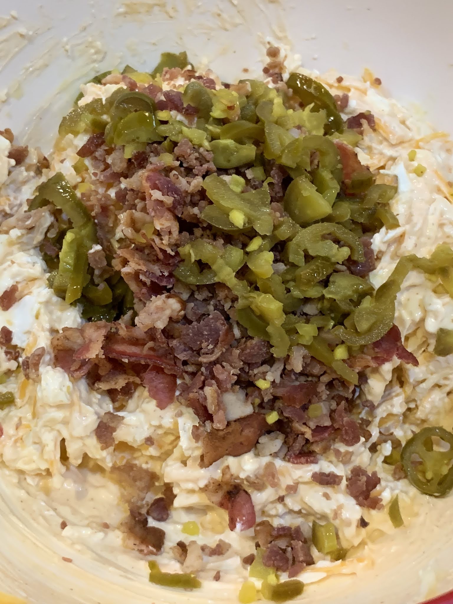 and then gently fold the bacon and jalapenos in until evenly distributed.