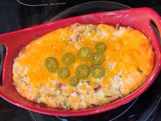 Combine everything except the bacon, jalapeños and 1/2 cup cheese until well combined