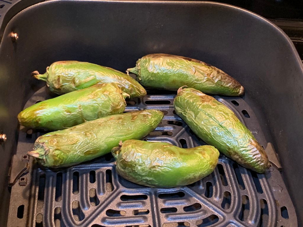 Whenever we are grilling dinner, Mark will throw a few whole jalapenos on the grill to have them with whatever we are having. On this day we forgot to do that and I wanted to just see how they would turn out in the air fryer. They turned out awesome!!