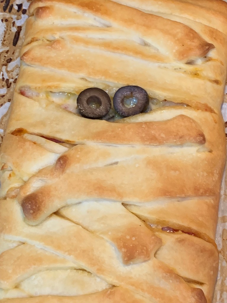 We made mummy pizzas after Halloween festivities. Here’s the recipe.