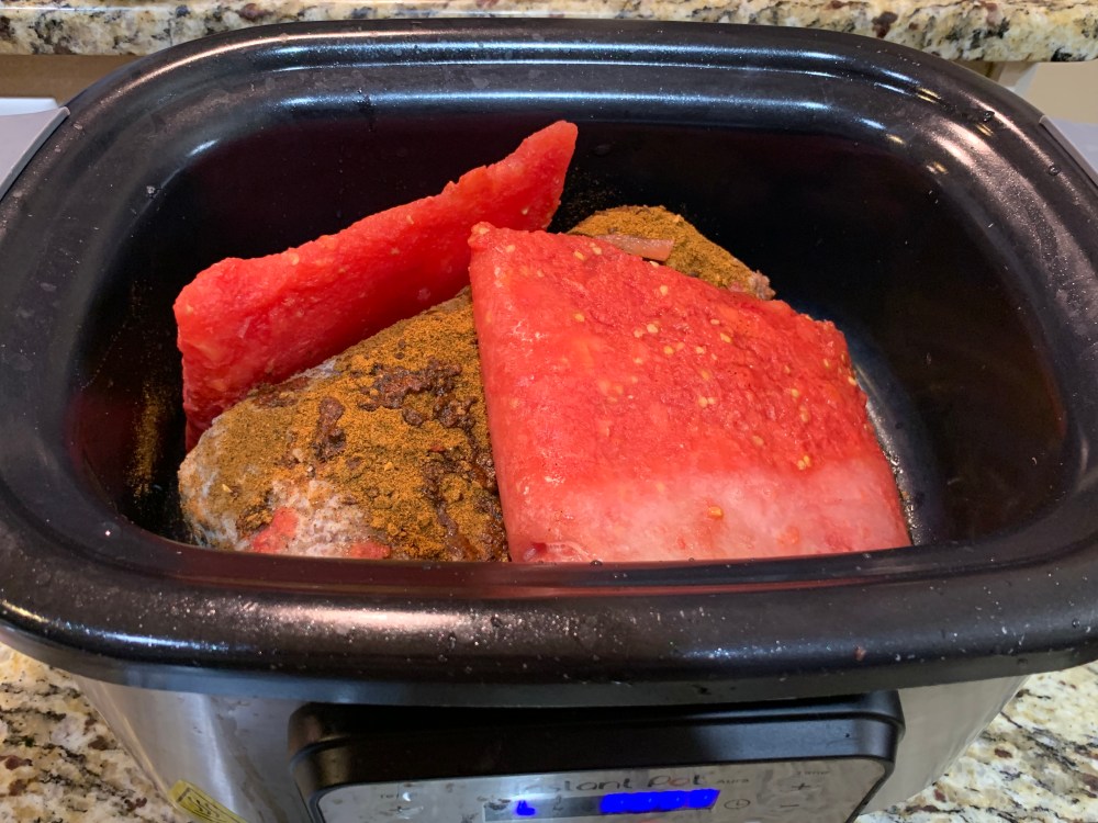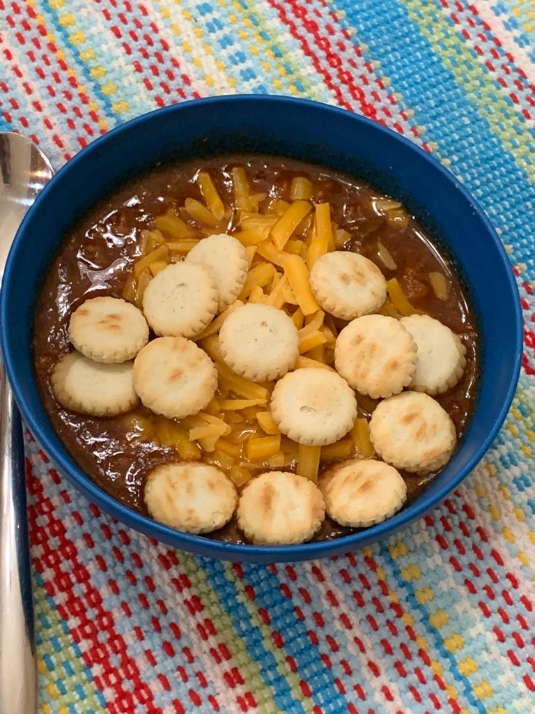 Of course I’m taking help from our slow cooker today. Before work I tossed in – frozen cooked hamburger and diced onion with a package of chili mix and a couple packages of frozen tomatoes. To finish it up when we get home – I tossed in a big can of chili beans. I like to do that at the end so the texture of the bean holds up and doesn’t feel mushy from cooking all day.