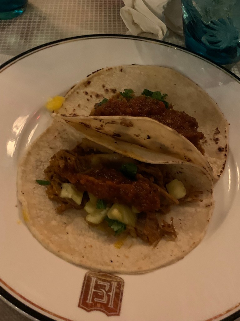 Today was a travel day for a work conference. There was a reception in the evening for the group to get together before the conference began. My picture below doesn’t do them justice but they served excellent barbacoa street tacos with pineapple salsa along with a red salsa.