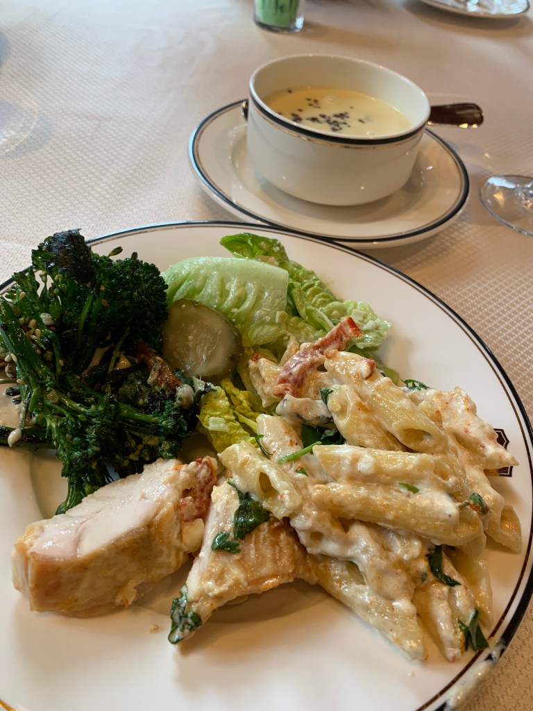I’m still out of town and wanted to share a couple great meals we had at the conference. This first picture is from lunch. There is something special about a cream sauce with pasta that incorporates sun dried tomatoes that makes my heart happy.