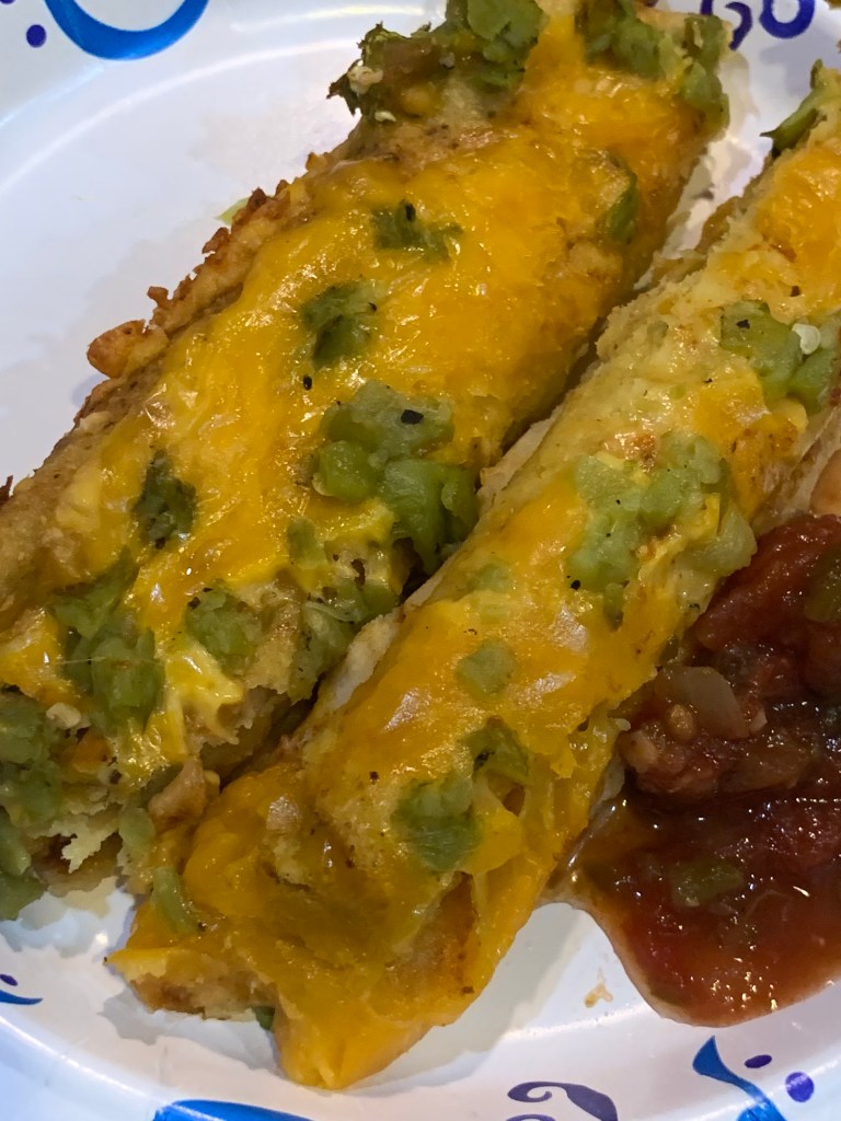 The kids had leftover pizza and my husband made taquito enchiladas for dinner using red enchilada sauce. Here’s a quick link to the recipe using green enchilada sauce.