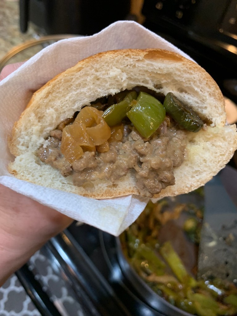 We have antelope hamburger to use up and this was a perfect dinner to thaw the meat during the day and cook it up later. The usual philly cheesesteak suspects are included in this recipe similar to the philly meatball sliders recipe that can be found here. Be on the lookout for this official recipe to be posted soon.