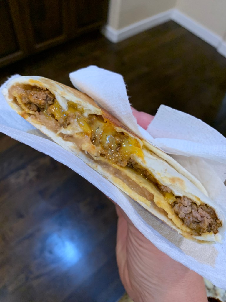 It was taco Tuesday early in our house with this spin for dinner. The kids were less excited about these today than I thought they would be. It feels like double decker taco meets crunchy burrito.