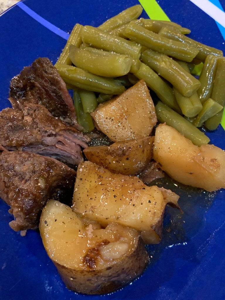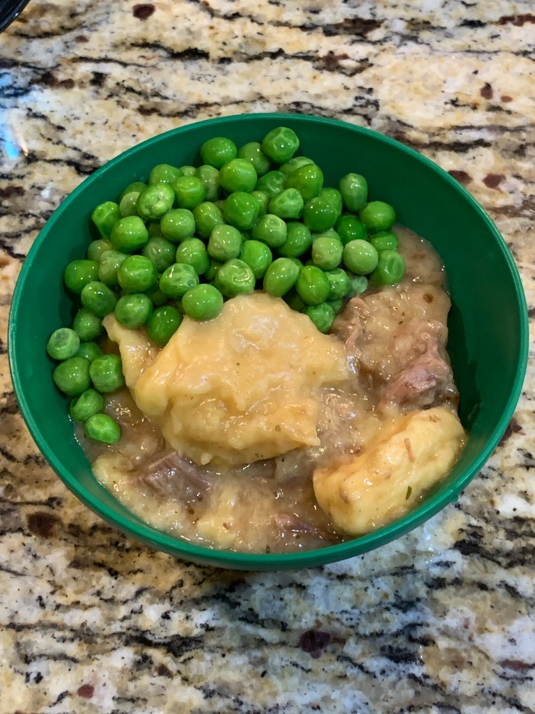 This is a spin on a chicken and dumpling recipe that I love using the instant pot to cook the dumplings. We used leftover roast and potatoes from the other night. Next time I would take out the potatoes and add more veggies like the trio of onions, carrots and celery like the classic chicken and dumpling recipe. Click here for the chicken and dumpling recipe that explains how to cook the biscuits to make perfect dumplings in the instant pot.