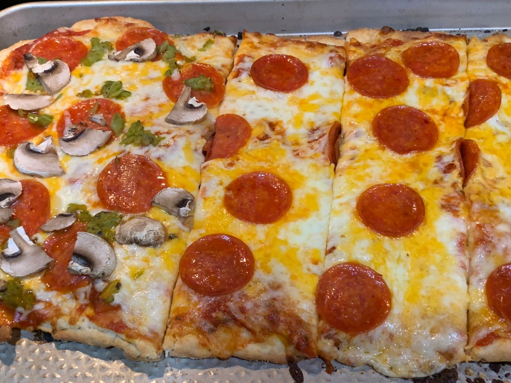 I let the girls pick what we had for dinner with Dad and Connor out of town elk hunting and you guessed it – pizza again. Rather than ordering out this time we made an easy pizza at home using a store bought pizza dough mix.