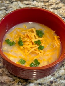 Corn chowder is one of my favorite ways to use the cooked sweet corn that we freeze in the fall. For a similar recipe using the instant pot, click here that could also have ham easily added to it.