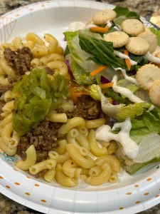 My husband and girls had a pasta dinner at their dance and my son and I baked some taquitos.