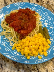 Another kiddo favorite. This is from a big batch of spaghetti sauce that we froze and added pepperoni to it along with the sausage.