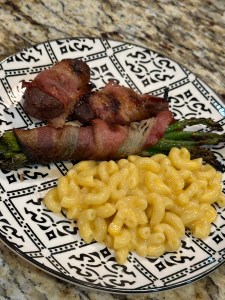 Enough said really. 🙂 I think of this dinner as our late Valentine meal. My husband knows the way to my heart includes bacon and green chile. Timing-wise this was the 18th of February… so still pretty close to Valentine’s Day. We were having bacon wrapped asparagus, bacon and green chile wrapped antelope loin and instant pot mac and cheese.