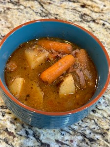 Flash forward to him leaving for work and me putting a beef stew in the crockpot for dinner. We ended up cooking it all day and then keeping it cold overnight to reheat and have this night – Thursday. It was really good. Stew is one of those things that is always great as leftovers too, so it worked out wonderfully.