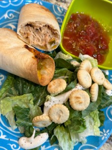This is such a quick and easy dinner when you bring freezer cooking and the crockpot into the picture. It is cooked shredded chicken with some taco seasonings and/or salsa with cream cheese added once that is fully cooked, That is wrapped in a small tortilla to “fry” in the air fryer and get nice and toasty. This is one of my favorites.
