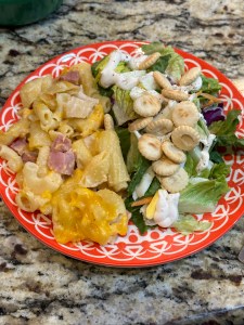 This is one of the freezer meals that I thew together when I was taking advantage of Christmas ham sales. Click here for that link to the freezer meal session and click here to the recipe that I used to throw this together. I added some pasta this time to help bulk it up and it was such a hit that the kids wanted to take it for leftovers to school for lunch. When using the pasta, I combined everything together well before baking rather than using layers.