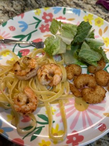 This is a twist on the Bang Bang Shrimp recipe from Bonefish Grill. Click here for the recipe. My husband has been wanting some shrimp and pasta so tonight was a choose your own shrimp adventure. My daughter’s plate is below and a picture of my husband’s is below that.