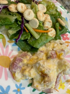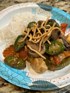This was from a freezer meal. We also cooked elbow macaroni that I stirred some of it with for the kids and they both really liked it and even went back for seconds. Here’s the recipe.