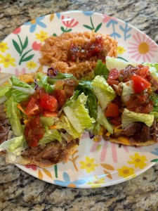 I can’t remember the last time I had a tostada but I can tell you these were amazing. We made pork carnitas and instant pot mexican rice as the side.