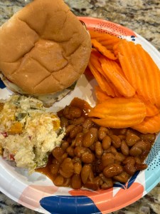 The kids used the chicken for tacos and my husband and I turned it into a baked dip. I used toasted bread, tortilla chips and carrots chips as my dip vessel. So good!