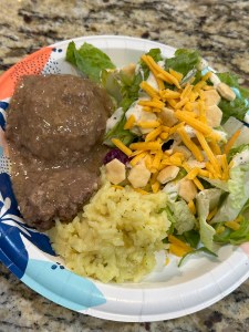 I made a few of these freezer meals a couple months ago and this was the last one of the salisbury steak. Here’s a link to the recipe. This dinner is comfort food at its finest and makes me think of my Mom’s meatloaf.