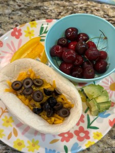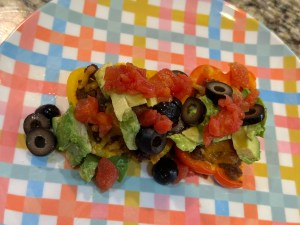 I was trying to go lower carb here and used peppers as boats and the kids did tortilla taco boats.