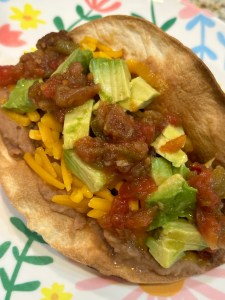 I wanted to do taco Tuesday with a twist. I envisioned putting fajita sized flour soft shells in the air fryer and having something of a flour soft shell tostada rather than a corn tostada. They didn’t stay flat like I was anticipating but they were very good and added a nice layer of crunch.