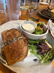 The salad was wonderful with their homemade ranch dressing. It included not only shredded carrots but sunflower seeds and dried cranberries. So good! I’m going to need to incorporate this more into my life.