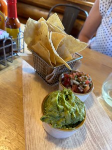The restaurant at the lodge opened up today and we were able to take our lunch break there and eat dinner there. Both were pretty tasty. My favorite might have been the homemade chips along side guacamole and pico.
