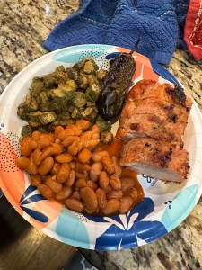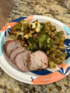 Sunday – Grilled Pork Loin, Zucchini and Jalapenos along with Air Fried Okra