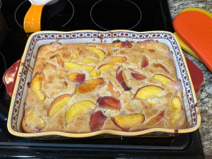 The peaches have arrived! In anticipation… I have been looking at peach cobbler recipes. We did a peach crisp last year that was really good and this year a peach cobbler sounds like just the ticket. Our littlest kiddo was so excited for peaches that she ate one while we made the peach cobbler.