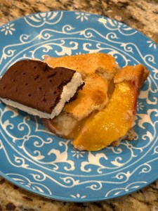 We didn’t have any vanilla ice cream on hand, so we promptly added it to the grocery list. We did have a box of ice cream sandwiches. I tried cutting off the cookie part to leave the vanilla ice cream but it didn’t work out.