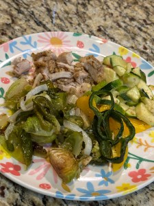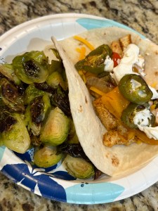 We had thawed chicken and veggies to use and anything like a taco makes my heart so happy. The brussel sprouts from Costco were so delicious roasted in the oven the other day that I just had to make some more of them to finish up the bag.