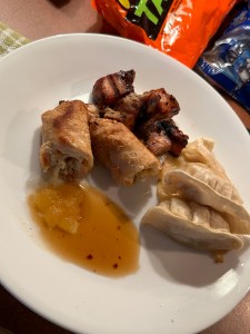 Friday – Chicken Skewers and Wontons with Eggrolls