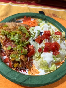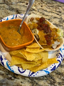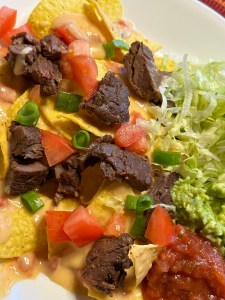 Yep. More deliciousness from the mountains! We made some carne asada steak and did “all the fixins” for some nachos. I did the cheese sauce, steak, tomatoes, green onions, salsa, quac and lettuce. I loved every bite!