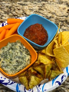 Here’s a link to the recipe. We did this and then cooked some bow tie pasta to add to the party.