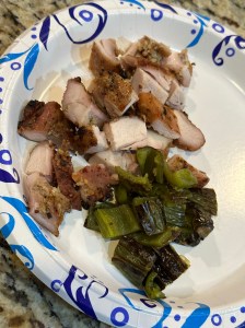 I was late getting home from work again today and my husband had grilled some chicken thighs. Everyone else had already eaten and I’m not sure what they had with theirs but the diced up grilled jalapeno was perfect with mine.