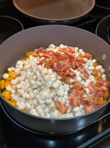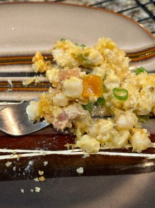 I had less than half of that mega 110oz hominy can to finish up and made a commitment to myself that it wouldn’t go to waste. Using it with the white chicken chili recipe was good and I wasn’t feeling like making pozole on this day but knew I needed to use it. I was reading Ree Drumond’s new cookbook and came across “Hominy Casserole” and it sounded really good.
