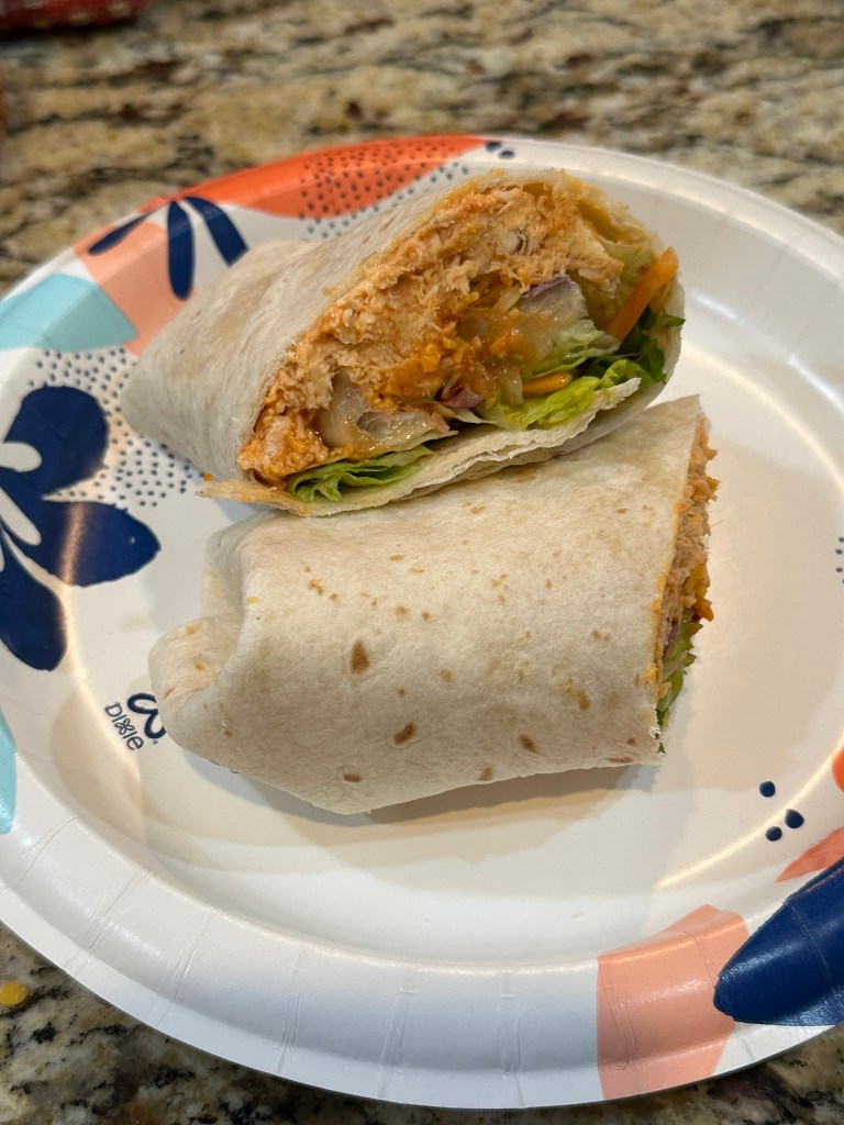 I love buffalo chicken and cooked chicken yesterday for the Super Bowl to make a buffalo chicken dip that didn’t end up coming together. Having the chicken already cooked made for a quick and easy dinner tonight.