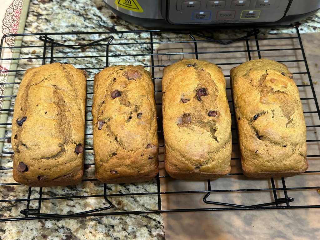 Pour the batter into the 4 prepared mini loaf pans and bake for 35-40 minutes or until a toothpick comes out clean. (50-60 minutes for one large loaf.) If the top begins to brown cover with aluminum foil.