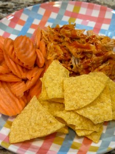 Lightened Version of Buffalo Chip Dip with Veggies and Tortilla Chips