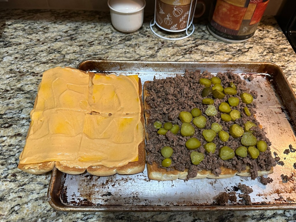(I made extra of this sauce and added some pickle relish to add more once the cheeseburger sliders were done baking.)