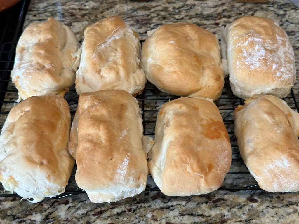 6. Punch down the dough and divide into 8 equal sized pieces. (Makes 20 rolls if you are doing just rolls and not strombolis.)