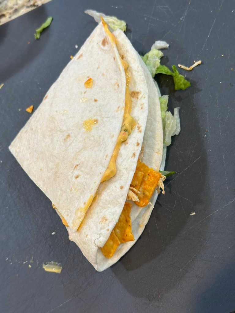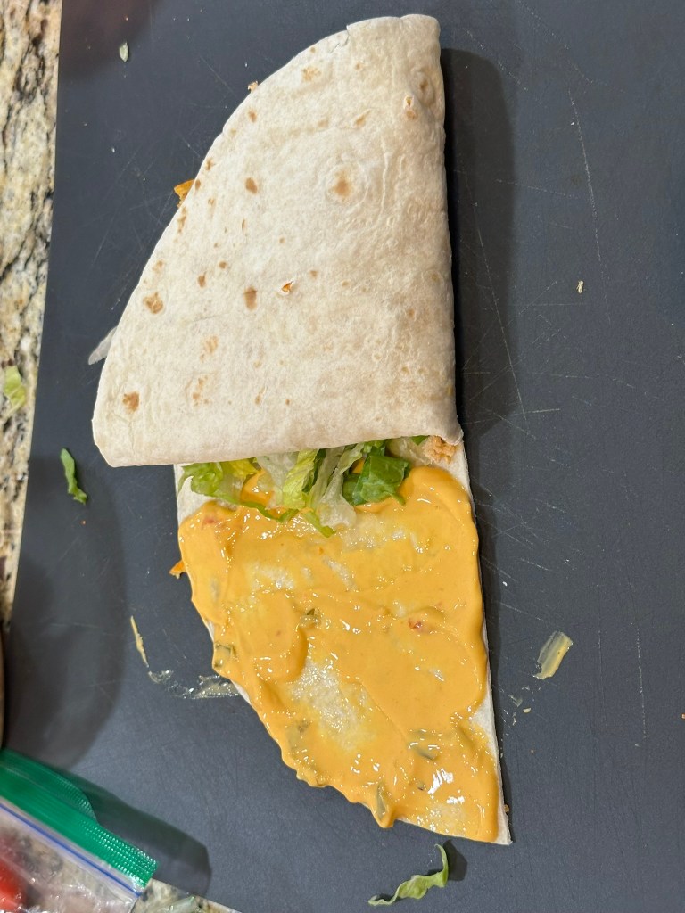 Cut the wrap sized tortilla similar to the picture below to be able to wrap it up once the toppings are added.