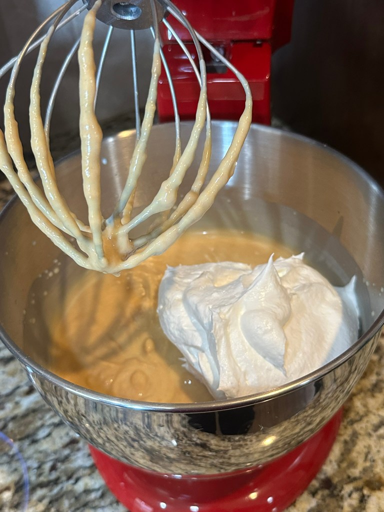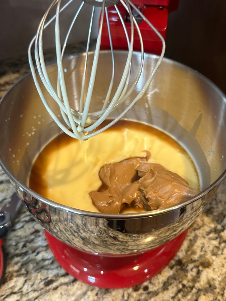 Mix the pudding with milk for 2 minutes until thickened. Then add in the peanut butter and vanilla. Once that is combined, gently fold in about 2 cups of cool whip.