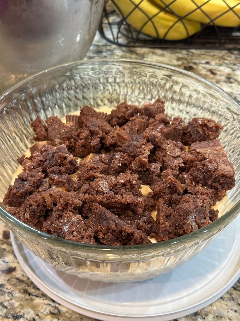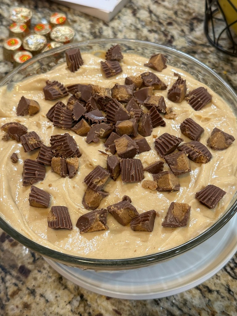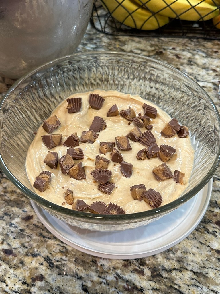 Finish with the rest of the cool whip and the last 1/3 of the peanut butter cups.